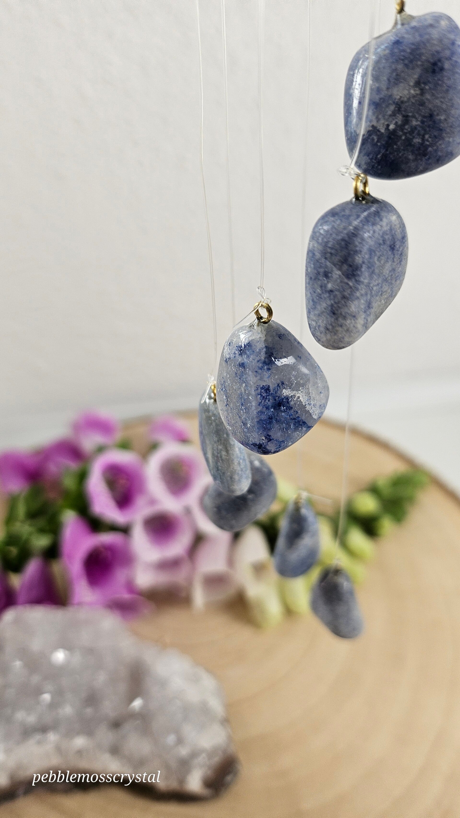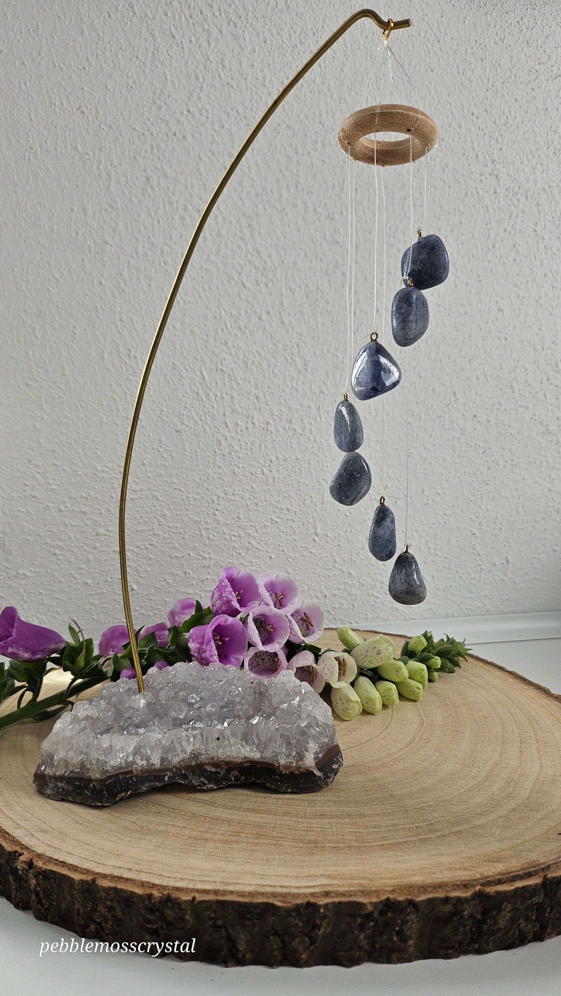 schönes Tisch Windspiel mit blauem Aventurin auf weißer Amethyst Basis