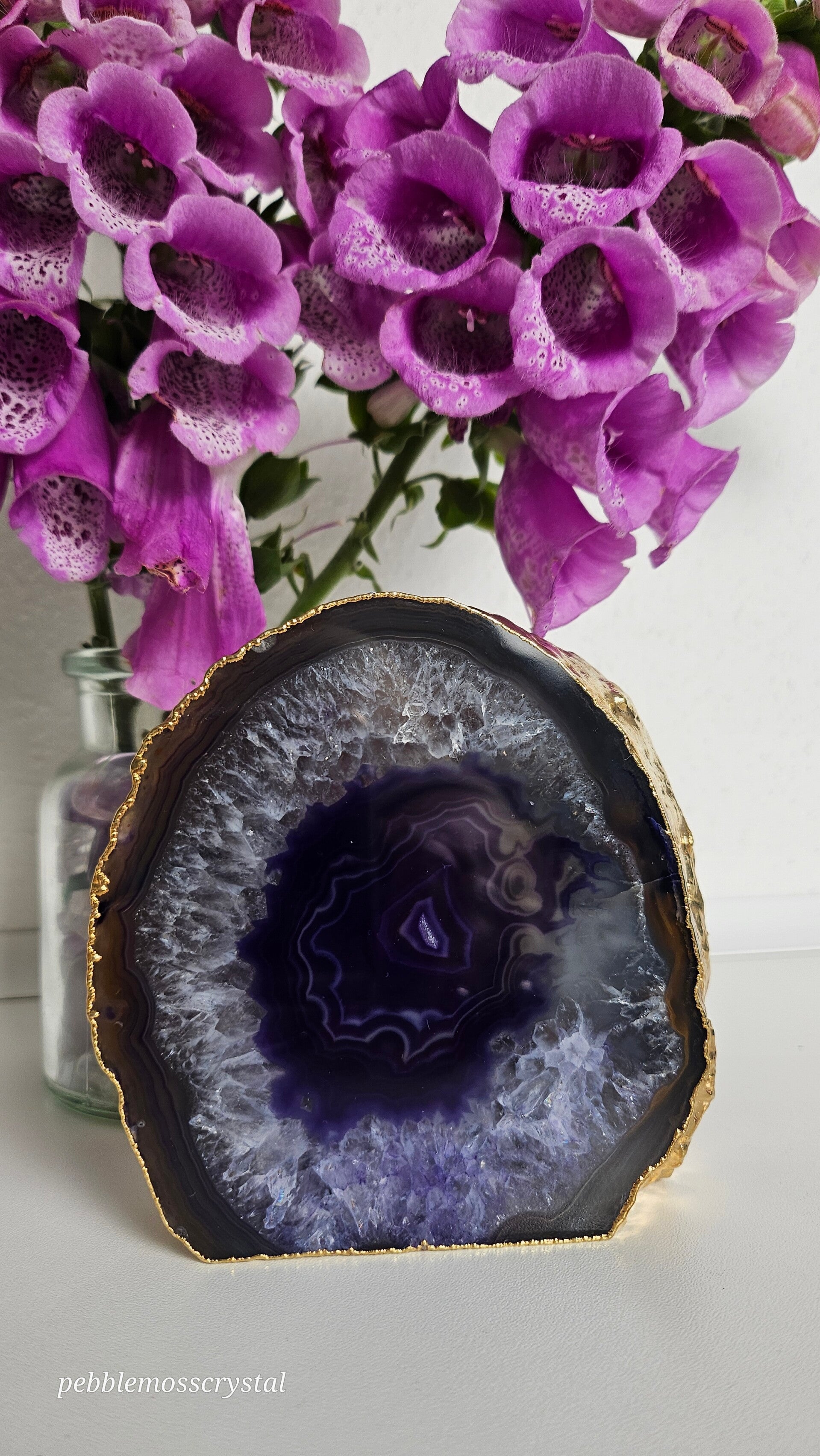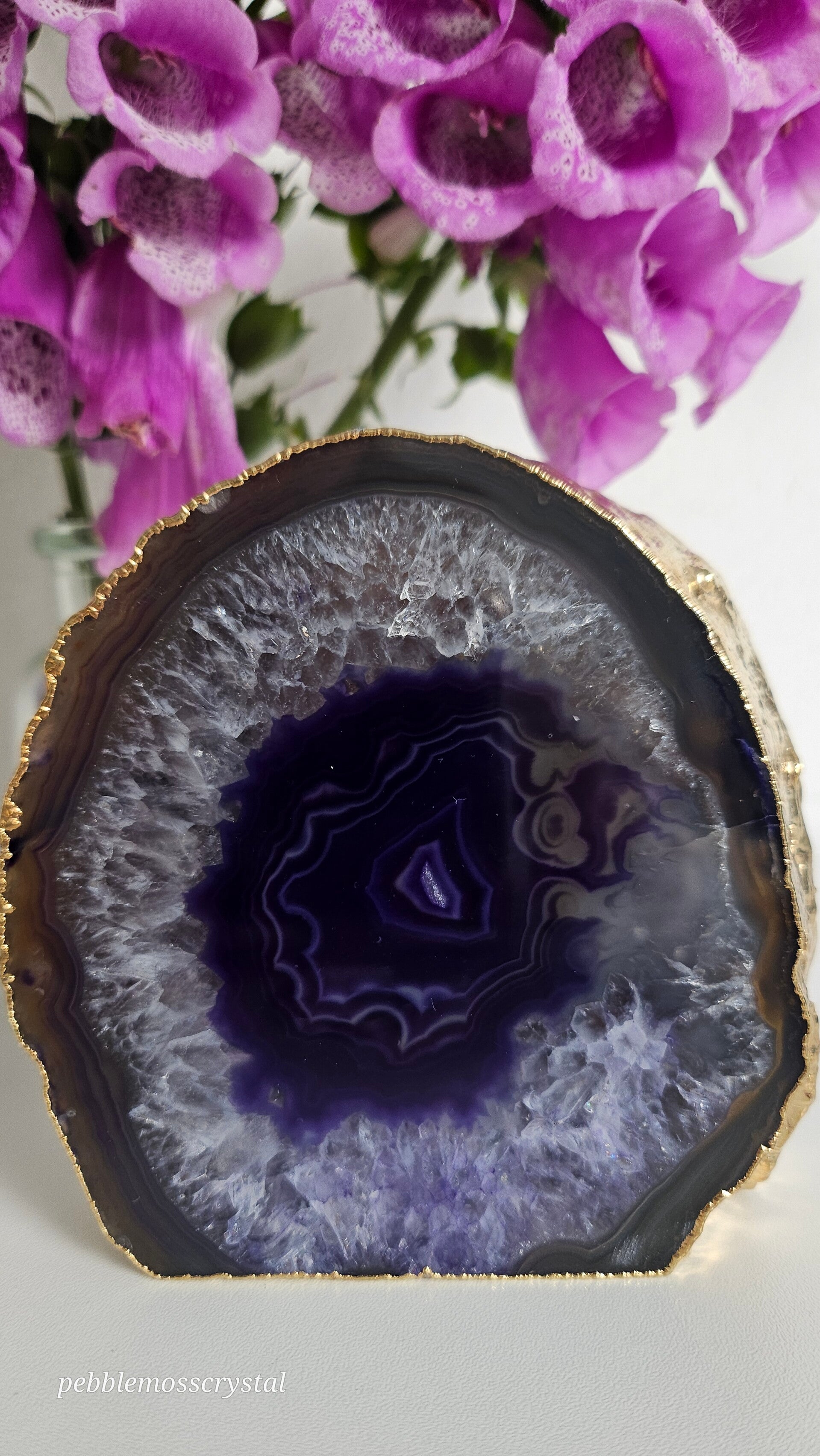 schöne, blau gefärbte Achat Scheibe, selbst stehend mit gold platinierter Rückseite