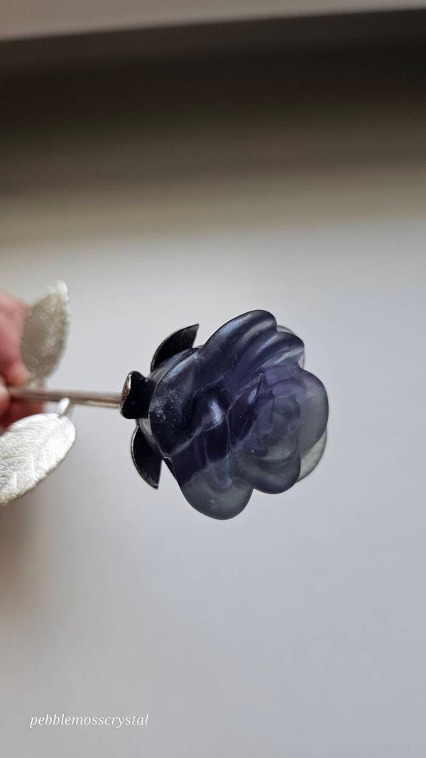 blau, grüne Fluorit Rose mit Stängel in Silber