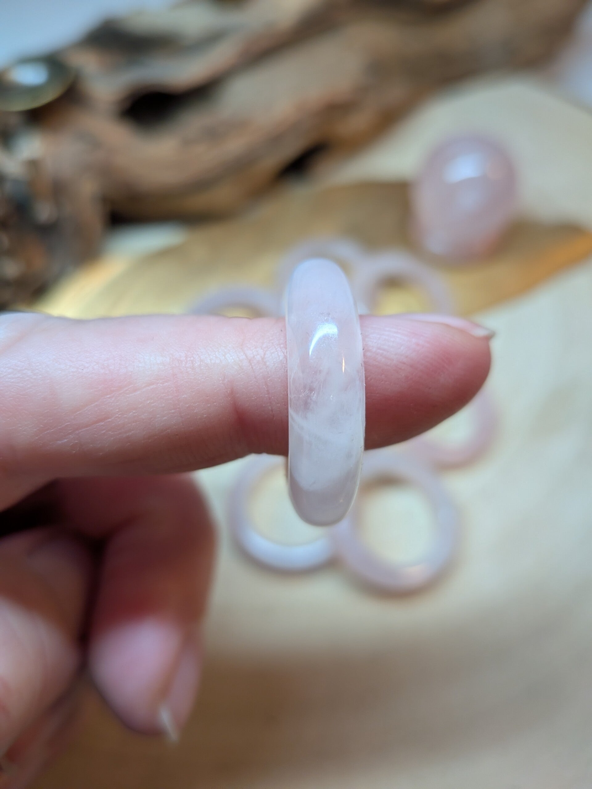 Rosenquarz Ring als Kugelhalter für kleine Kugeln